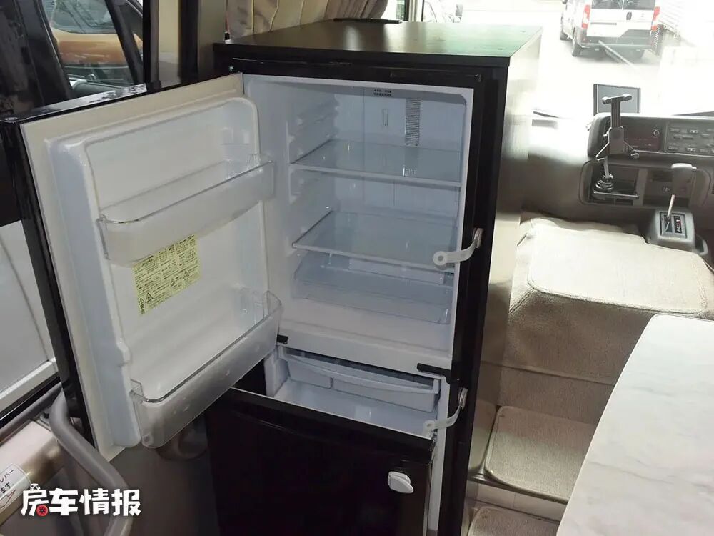 而在副驾驶后方则提供了有一台双开门的冰箱,容量还是很不错的,可以满足日常分类存储食材的需求。