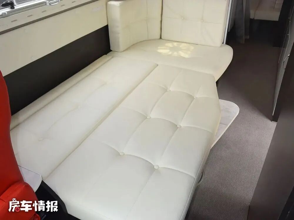 这款房车是基于日野中巴车底盘所改造的,整体的车身尺寸达到了6990*2030*2720mm,临界7米的车身长度足以保证内部的生活区使用空间,只不过如果换做国内的话,是无法满足上蓝牌C本驾驶的规定。