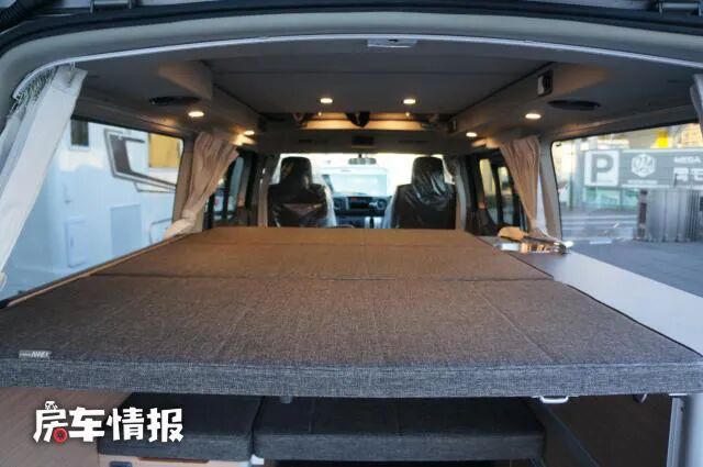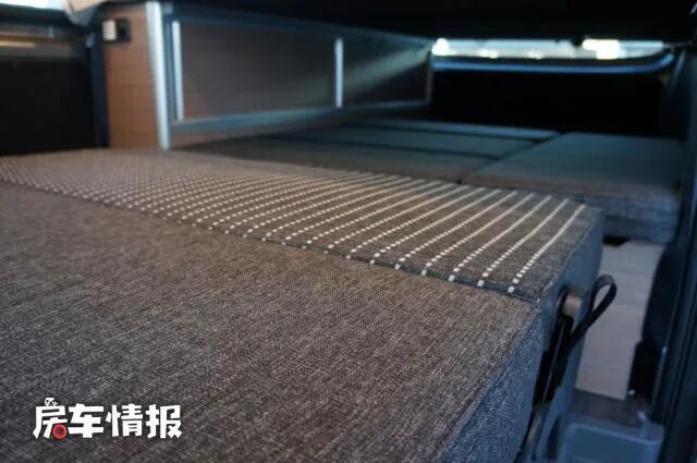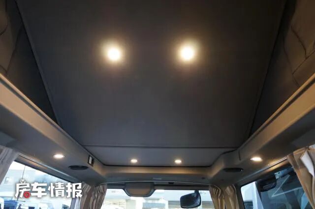 车顶的升顶机构内并没有提供固定的床位,只是用来增高内部的空间,全车的床铺全部位于车厢内部,分为上下两层。