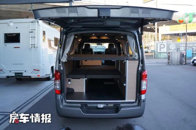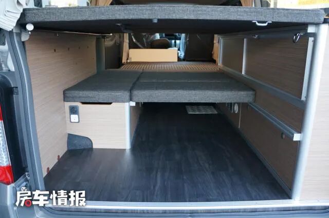 打开上翻的后尾门,可以看到床板下方还带有储物空间,日常的行李或者是日常买的日用品都可以存放在这里。