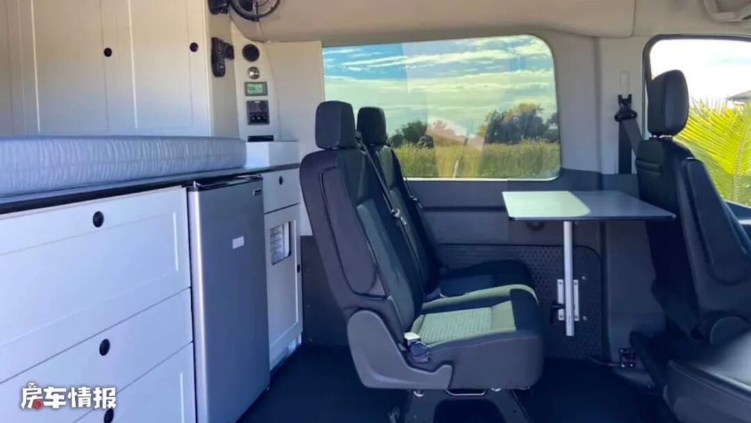 进入车内整体感觉还是比较通透的,大面积的观赏窗为车内带来了比较不错的通透感,虽然只定位露营车的功能,但是车内的空间表现还是可以的。