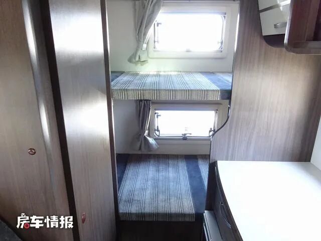 最后是位于车厢尾部的休息区,采用的是横置上下床的设计,分别可以容纳一个成年人使用,侧面均带有可以采光通风的外推窗,所以整个休息区的光线还是不错的。
