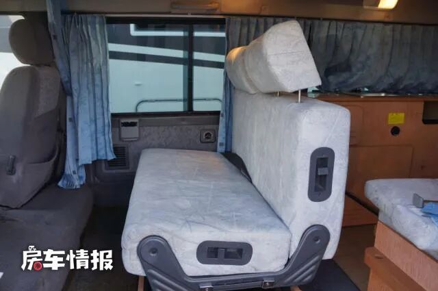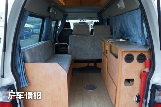 这款车的外观比较普通低调,顶部带有升顶机构,所以内部至少可以保证4个人的睡眠需求,车尾部带有登车爬梯,方便日后使用。