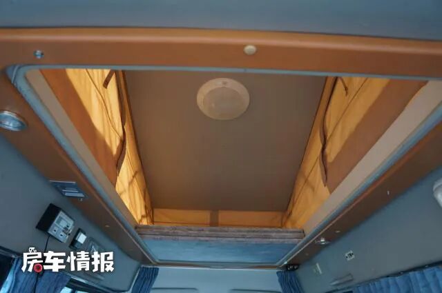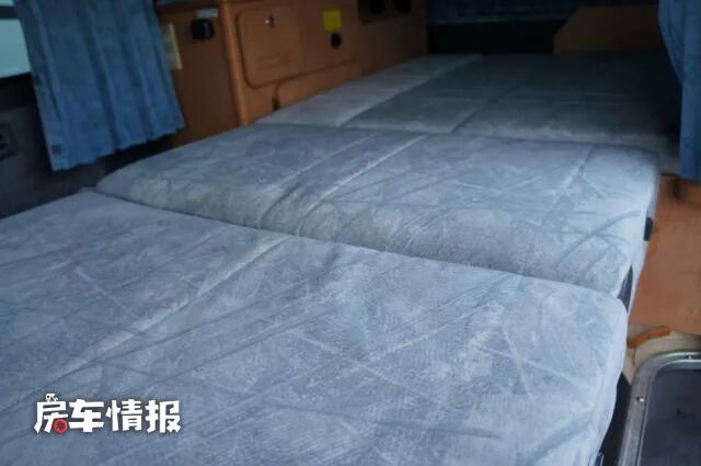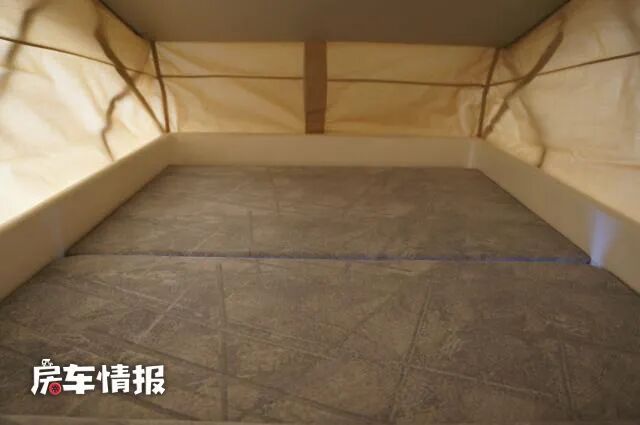 除此之外,打开顶部的升顶机构,还可以看到内部也提供一张简易的双人床铺,所以整辆车最多可以容纳四个人睡觉休息,对于有二胎的家庭来说还是比较合适的。