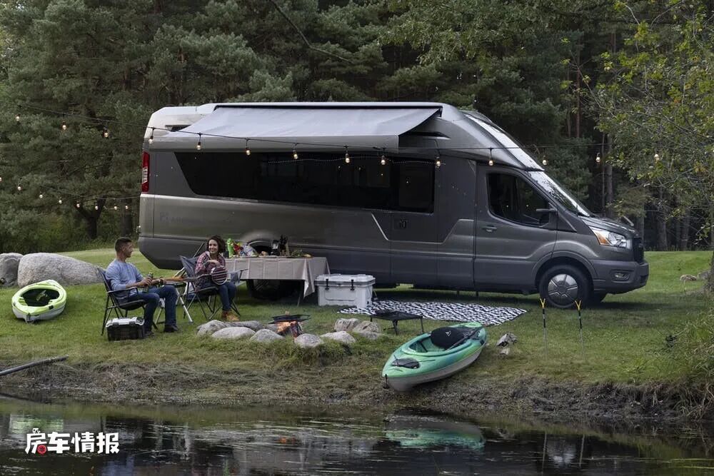 这辆名为Vision Vehicle的电动露营车是基于福特全顺底盘所打造的,采用燃料电池混合动力驱动,在底盘集成的增程电气布局上将大容量电池与燃料电池配对,行驶里程可达483公里,虽然相较于电动汽车来说,这样的续航里程并不是很强大,但是对于房车车主来说还是完全够用的,因为如果以时速95公里来计算,这辆车最多可以行驶长达五个小时。