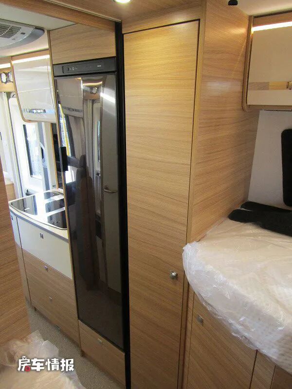 操作台后方是一台142L的单开门冰箱,内部也提供了15L单独的冷冻空间,可以满足日常分类存放食材的需求。冰箱后方则是一个立式的衣柜。