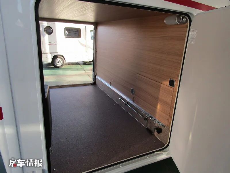 全车采用了主流A型房车的造型,尤其是前悬部分比较短小,这样的设计可以使驾驶人员的视野更宽阔,更方便的观察车前情况。车身右侧配备了基础的遮阳棚,尾部还提供了超大尺寸的左右贯通式储物舱,可以满足日常存放大件行李的需求。