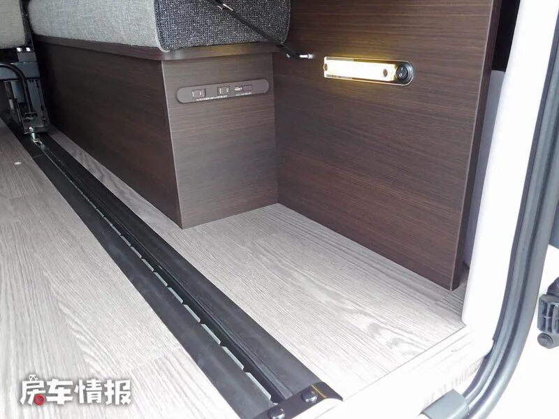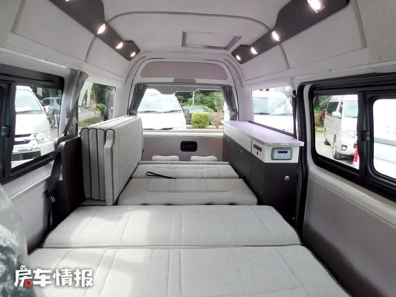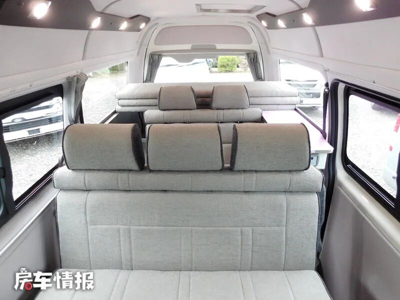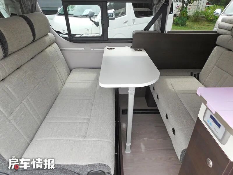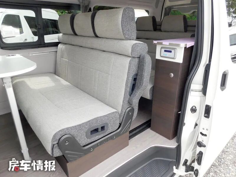 生活区内第一眼看上去更像是家用的轿车,有两排座椅,但是看不到房车的设施,因为这款车将设施都隐藏在车内了,平时可以当作一辆通勤车来使用,还不用担心限宽限高的问题,十分方便。