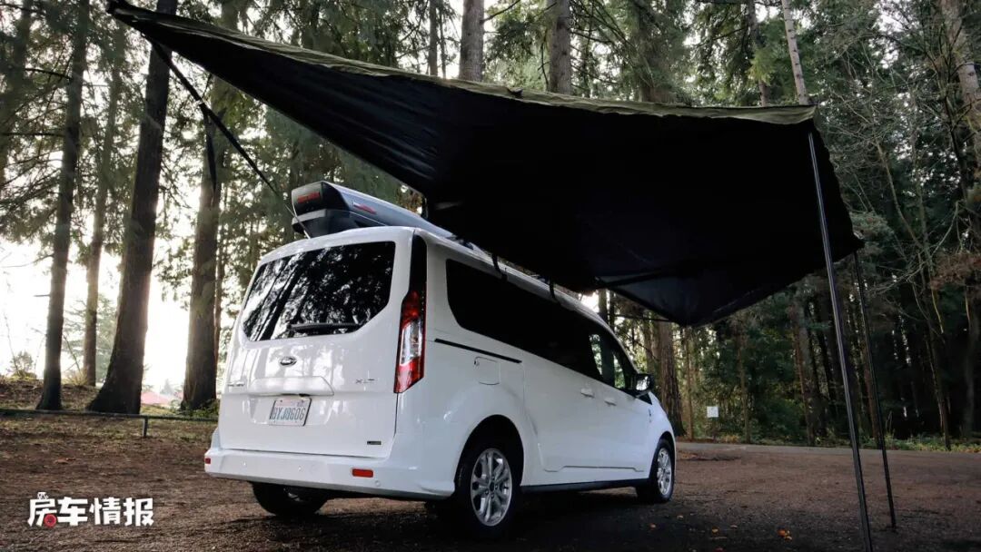 新车基于福特全顺connect底盘打造而成,和国内定位轻客的新全顺不同,这款底盘更偏向于家用,动力上也是2.0T的汽油发动机,外观上我们也看不到有过多特殊的改造,唯一区别于家用车的就是在顶部加入了一个外置帐篷的设计,使整辆车更贴合露营车的定义,相当于有个独立的二层卧室,打开之后就可以在内部进行休息了,当然全车也配备了爬梯,可以通过爬梯进入,对于热爱野外露营的人来说,这个设计还是挺便捷的。