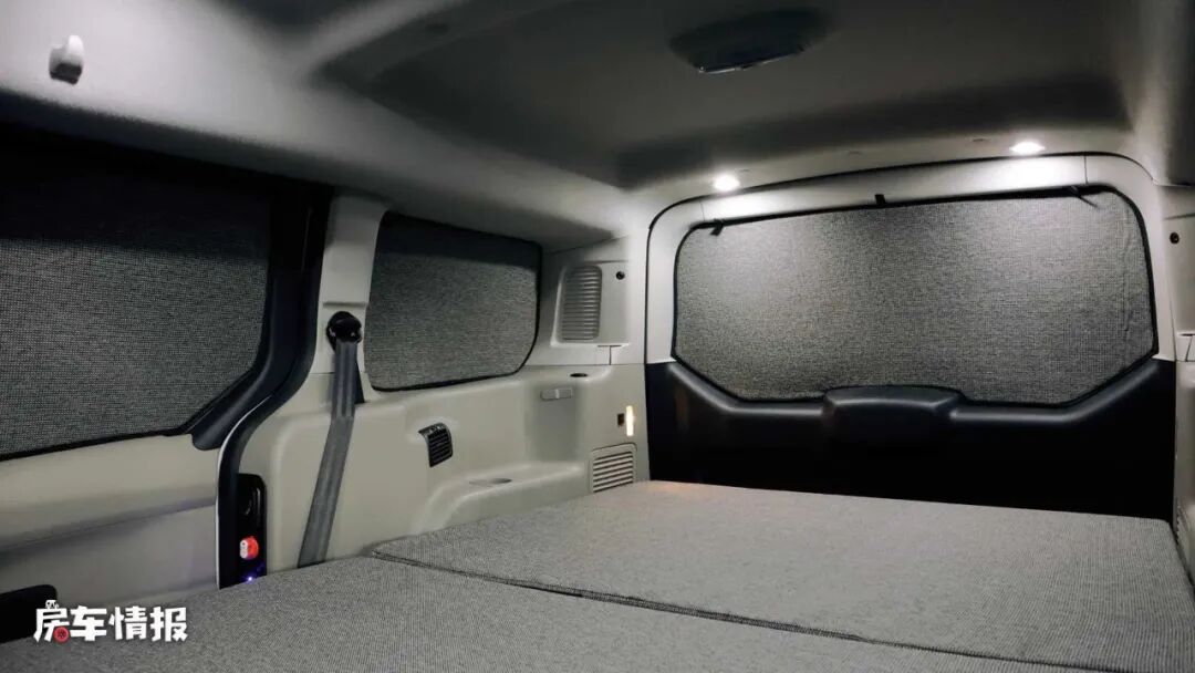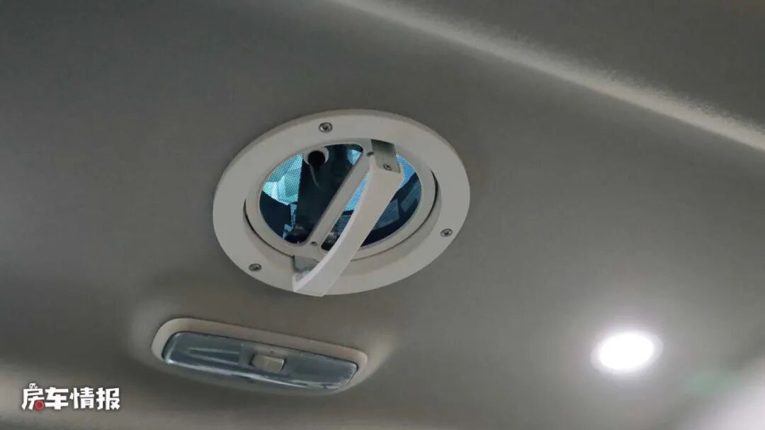 除了可以满足基本的睡眠需求之外,车顶部也配置了通风的换气扇,以及一些在夜晚使用更便捷的小夜灯。