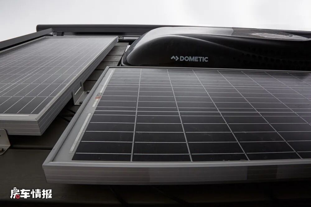 介绍完整体的布局,剩下就是大家最为关心的水电路,电路上,这款车是搭载了2000W的逆变器,标配300Ah的电池,顶部还配置了太阳能电池板;水路上则提供了18.9L的主副水箱,以满足基本的生活需求。