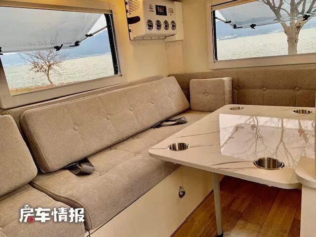 侧面则是有一个折叠的大尺寸餐桌,当驻车时就可以打开餐桌,能够容纳四个人在这里就餐小聚。