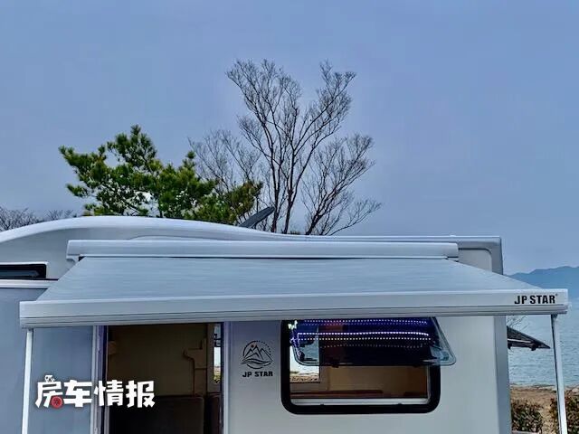 不过无论是定义房车还是基础的床车,车外的遮阳棚都是必不可少的,而且还是电动的,这样就能在天气好的时候营造出一个户外的休息区了。