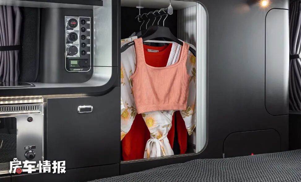 主操作台的后半部分主要是大衣柜,卷帘门式的设计也比较节省车内的空间,整理还是挺实用的。