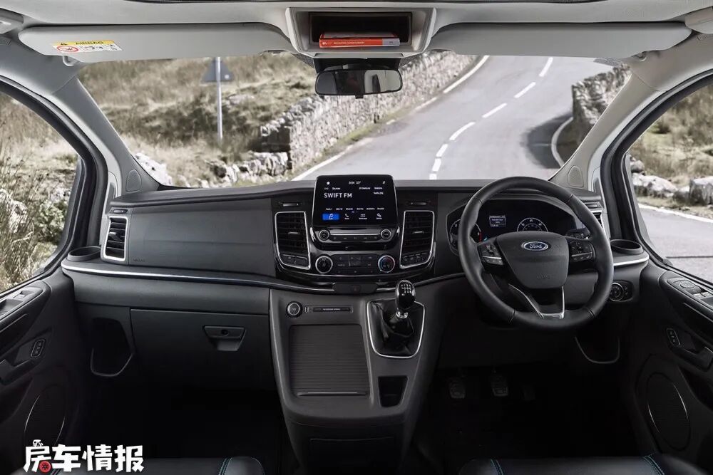 底盘方面,全车是配置了2.0L福特 EcoBlue 发动机和六速手动变速箱,最大能达到128马力,即最大功率为94kW,当然后期也提供自动挡变速箱和123kW功率的选装。驾驶室内部看起来还是比较先进的,在底盘的基础配置之上,还提供了6寸的娱乐显示屏,带有当下最为流行的Apple CarPlay和Android Auto功能,另外也提供后视摄像头的功能。