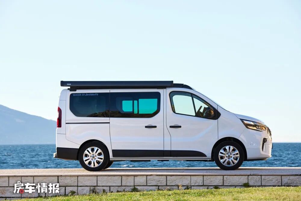 这款名为Seaside的露营车是一款由日产与德国Dethleffs(德福房车)合作推出的小型露营车,搭载日产Primastar的继任车型NV300作为底盘,全车的长度仅为5080mm,既可以作为城市通勤使用,还能实现野外露营的功能。