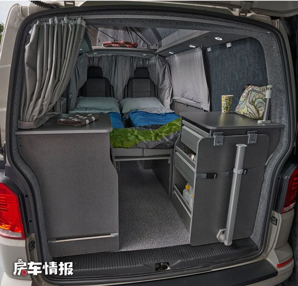 和我们之前给大家介绍的升顶露营车不一样,今天要介绍的这款露营车的升顶是侧开式的,虽然和我们常见的设计不同,但是也能保证整辆车有个“小2层”,为更多的人提供可以睡眠休息的地方。