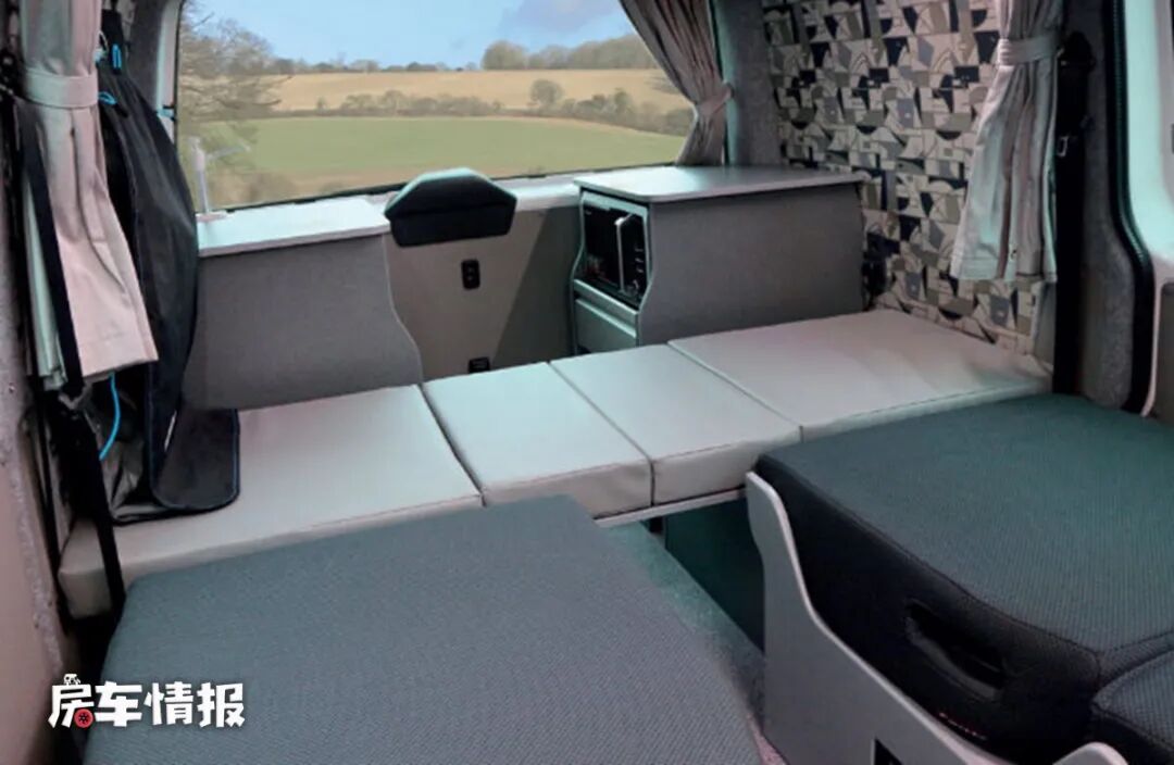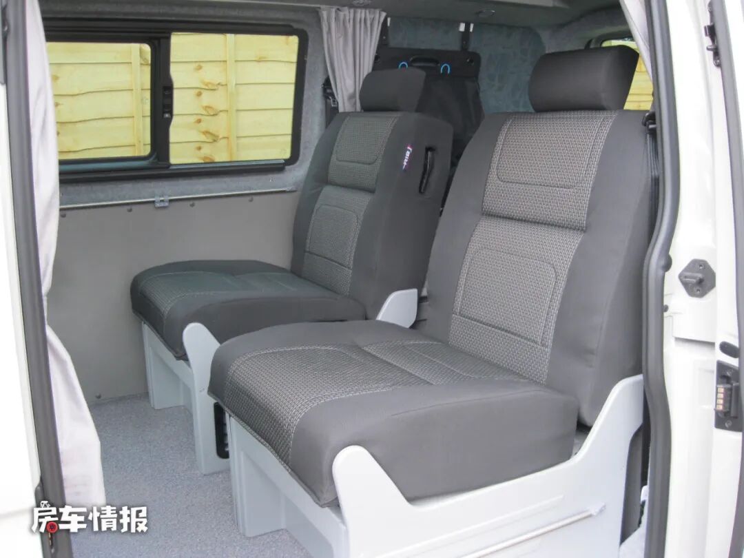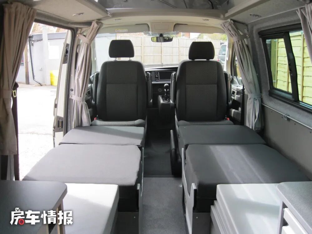 当晚上需要休息的时候,可以将前排乘客座椅放倒,主副驾驶座椅向后旋转,这样就形成了两张简易的单人沙发床,每张床的尺寸可以达到1860*600mm,各能容纳一个成年人使用。