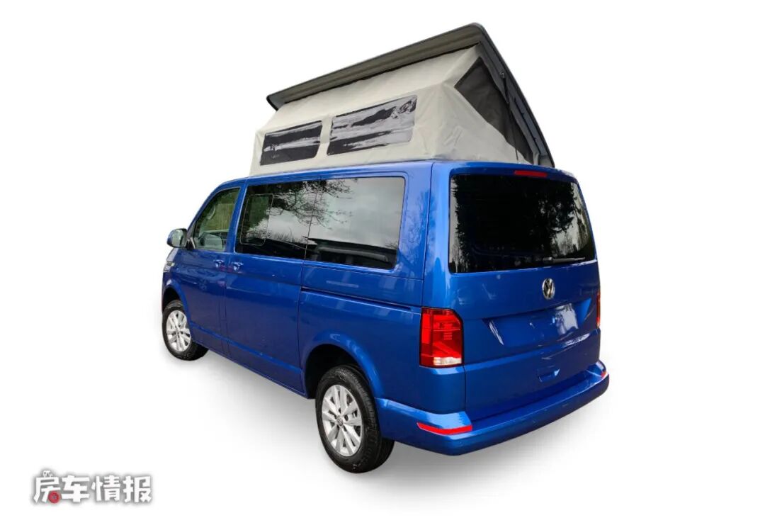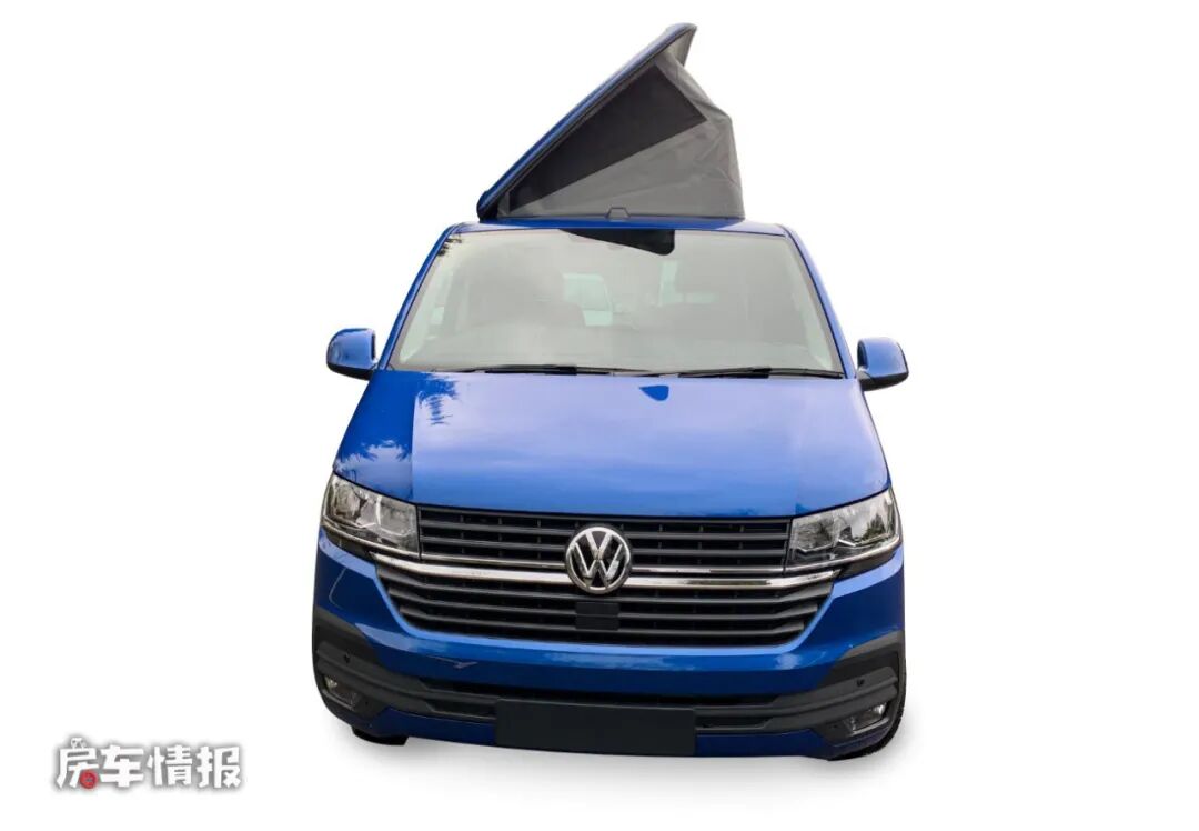 这款露营车是基于最新款的短轴大众T6.1作为底盘的,全车的车身尺寸比较小巧,长宽高仅为4900*1900*1990mm,,后期也可以选装长轴版的车型,日常情况下它就是一辆常见的家用四座MPV车型,即便是2米的地库也能够正常的出入,新改版的大众T6.1带有最新的大众家族式的前脸设计,很有辨识度。