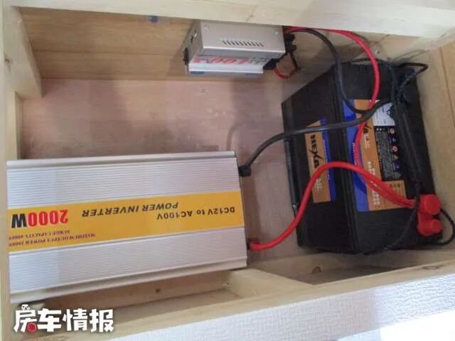 由于车内没有用水的设施,所以没有配备水箱,但是配备了2000W的逆变器以及100Ah锂电池,可以放心的车内用电。