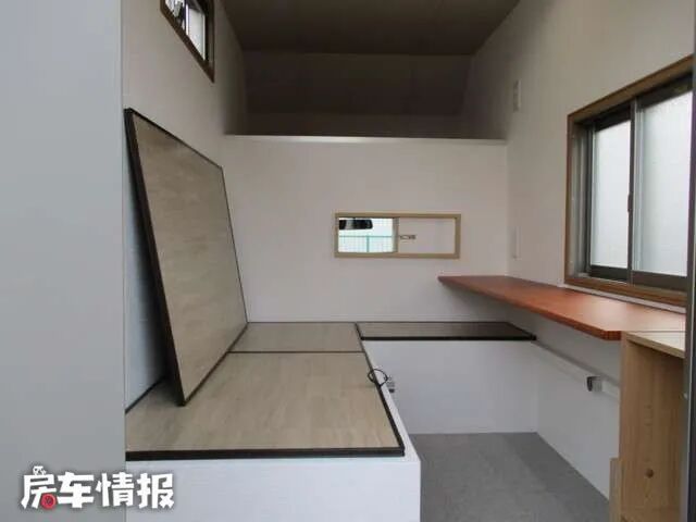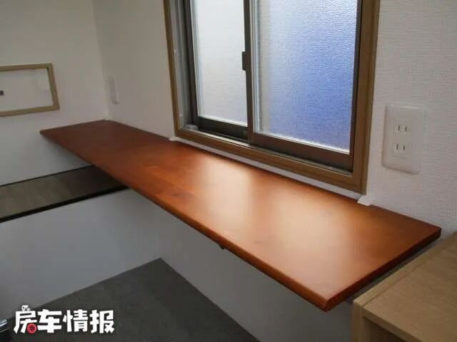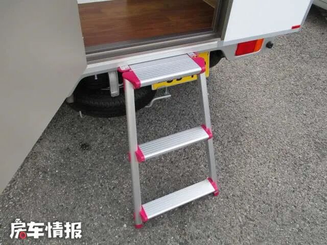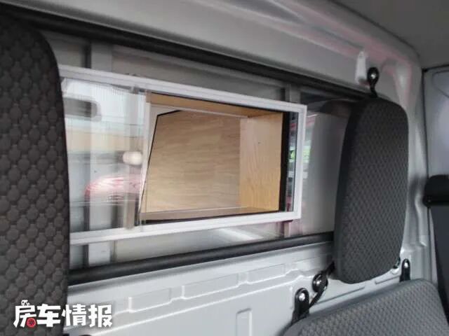 生活区内设计简单,需要从车尾部的折叠梯进去,虽然从外面看上去车很小,不过餐桌、床、柜子样样俱全。驾驶室后面还有一扇窗户可以看到生活区,前后交流十分方便。