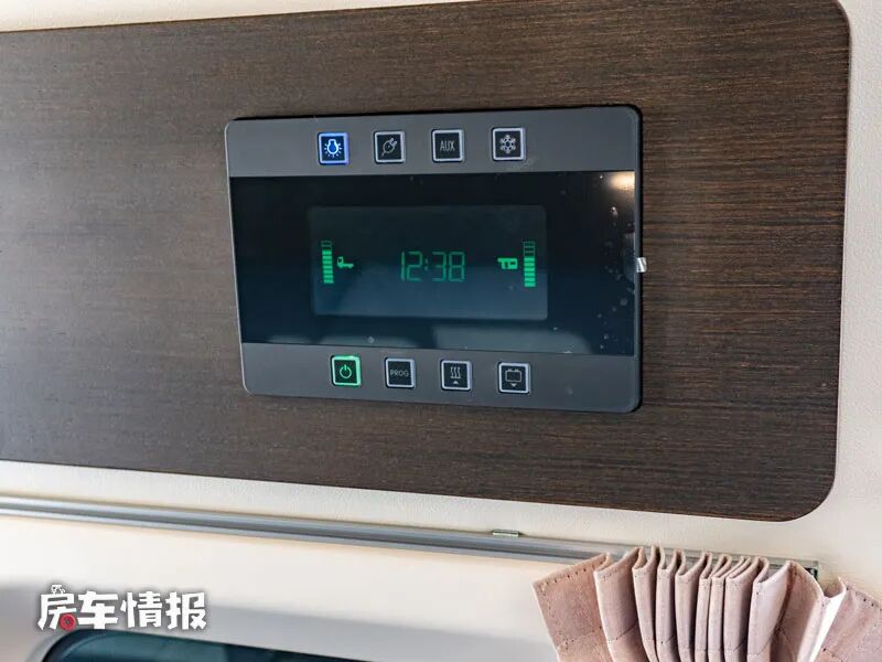 这款车在电路上带有基础的逆变器和电池,水路上也分别提供了12L的净水箱和污水箱。