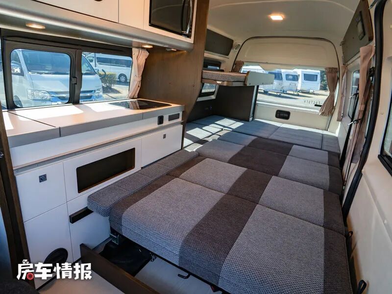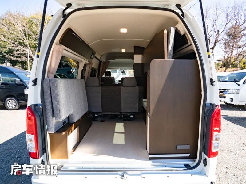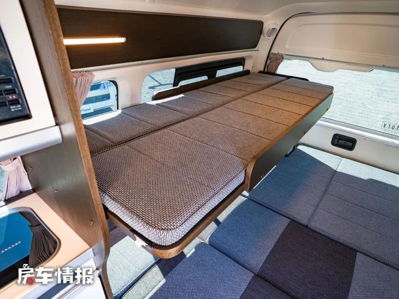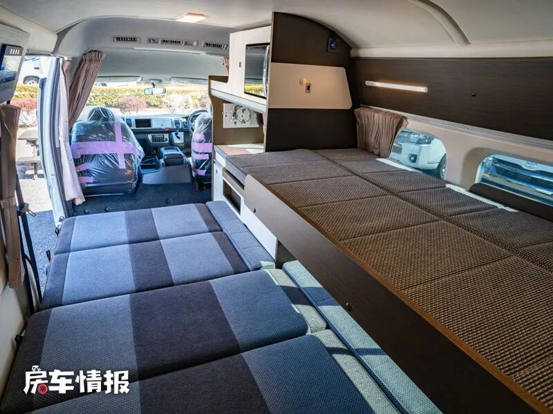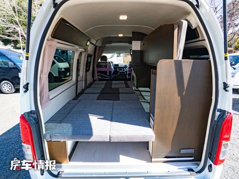 虽然日本床车的尺寸和国内房车相比还是属于紧凑型的,但是因为内部的功能比较简单,所以留给睡卧区的空间还是比较大的,今天就给大家介绍一款带有超大床的丰田床车。
