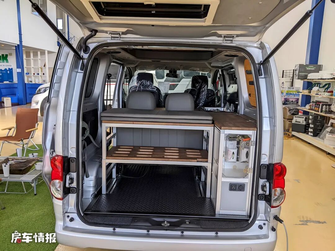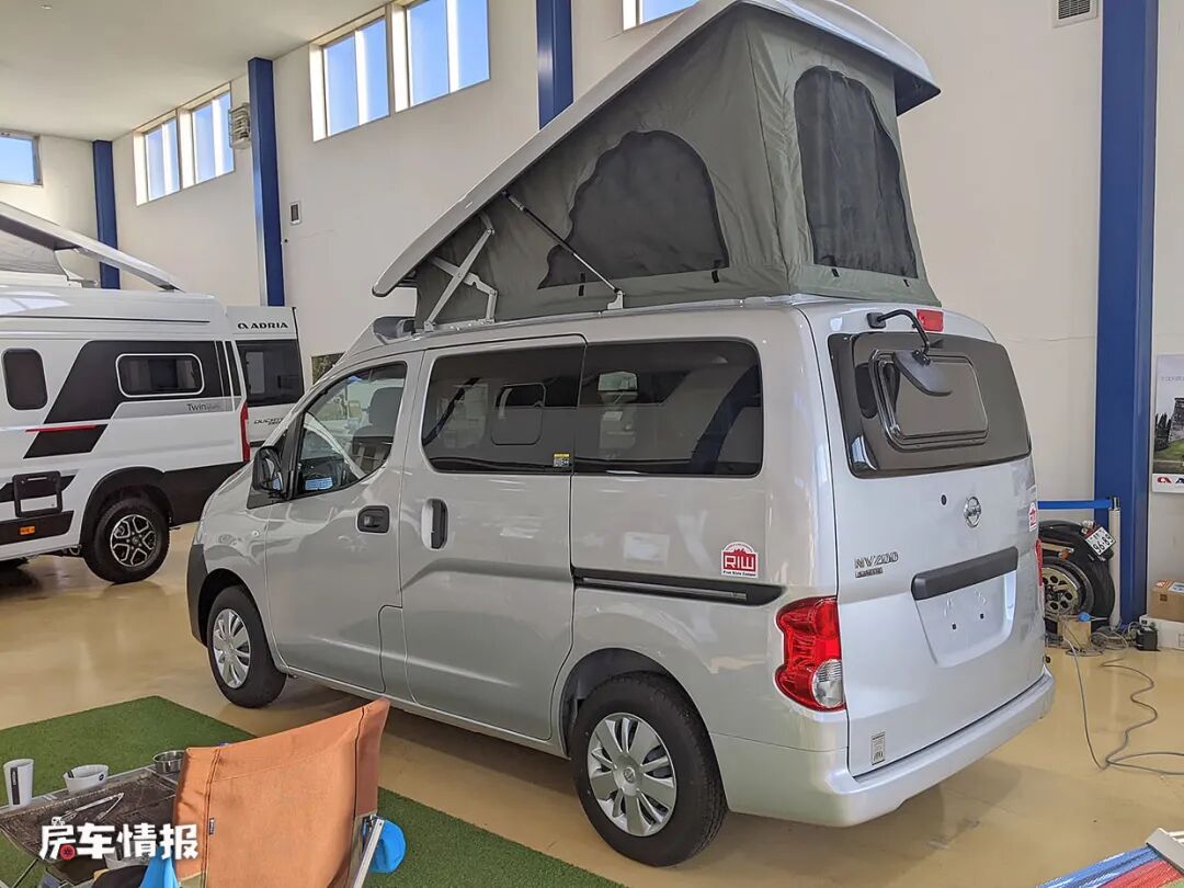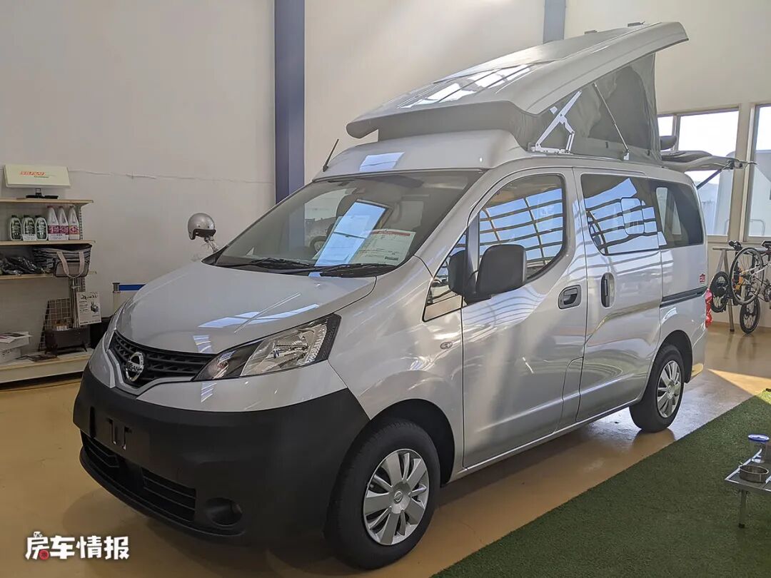 之前我们介绍过搭载日产NV200底盘所改造的露营车,其外观和丰田海狮较为相似,都是面包车的样式,不过不太一样的是前脸设计,更有日产家族式的感觉,那么今天就给大家介绍一款基于日产NV200底盘所打造的一款带有升顶的紧凑型床车。