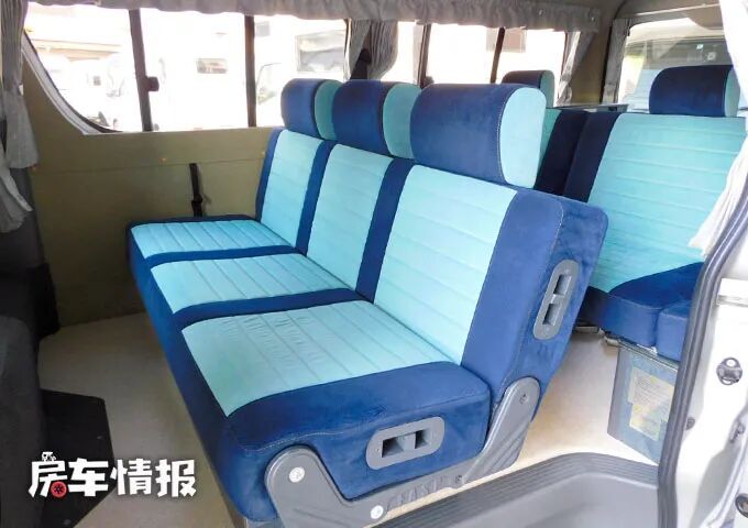 车厢内部保留了两排乘客座椅,行车时均可以面向前方乘坐,当驻车时第一排乘客座椅则可以向后翻转,与后方变成一个面对面的布局模式,另外地板上还预留了餐桌的卡槽,后期可以安装上一张小型的餐桌,也能满足基础的就餐需求。