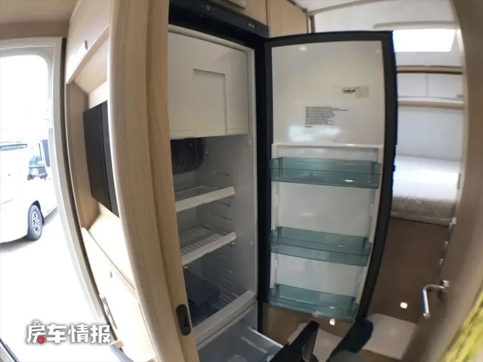 另外整辆车还提供了一个大容量的单开门冰箱,内部也带有小型的冷冻格,可以满足日常分类存放食材的需求。