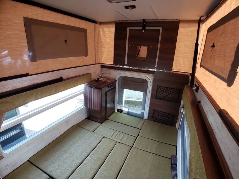 当然除了最基础的睡床功能,整车还提供了简单的水电路配置,电路上是配备了105Ah的电池,后期还可以加装第二块电池以及太阳能电池板,水路上则提供了16L的淡水箱,后期有需要还可以加装小型的车载冰箱。