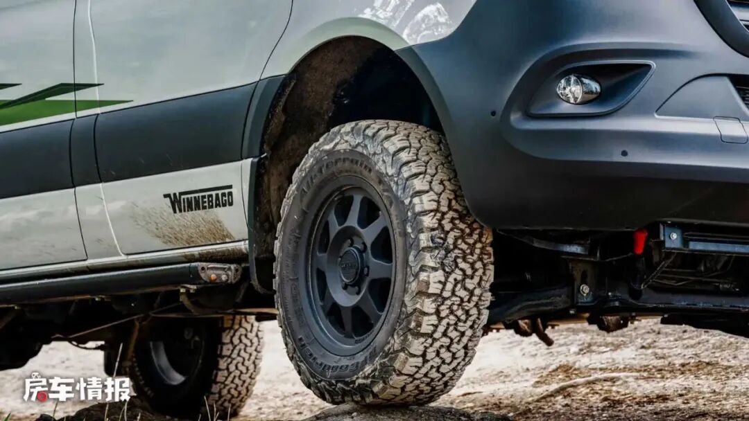 这款新车由温尼贝戈房车公司打造,在外观上,这款车保留了奔驰的豪华属性,同时还加入了可以凸显越野性能的套件,包括顶部的户外探照灯以及行李架,另外下方的轮毂也升级为了兼具越野性能的4ETS功能的全熏黑铝制轮毂,另外还做了调教,使之离地间隙增高,这样在后期上路时也可以从容的面对崎岖道路。