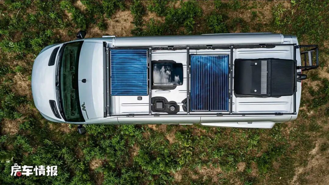 水电上,这款车是搭载了一台2000W的逆变器,提供了两块124Ah的锂电池,同时顶部还配置了多块太阳能电池板;水路上也提供了80L的净水箱和75L的灰水箱,对于两个人来说,整车的水电容量还是完全够用的。