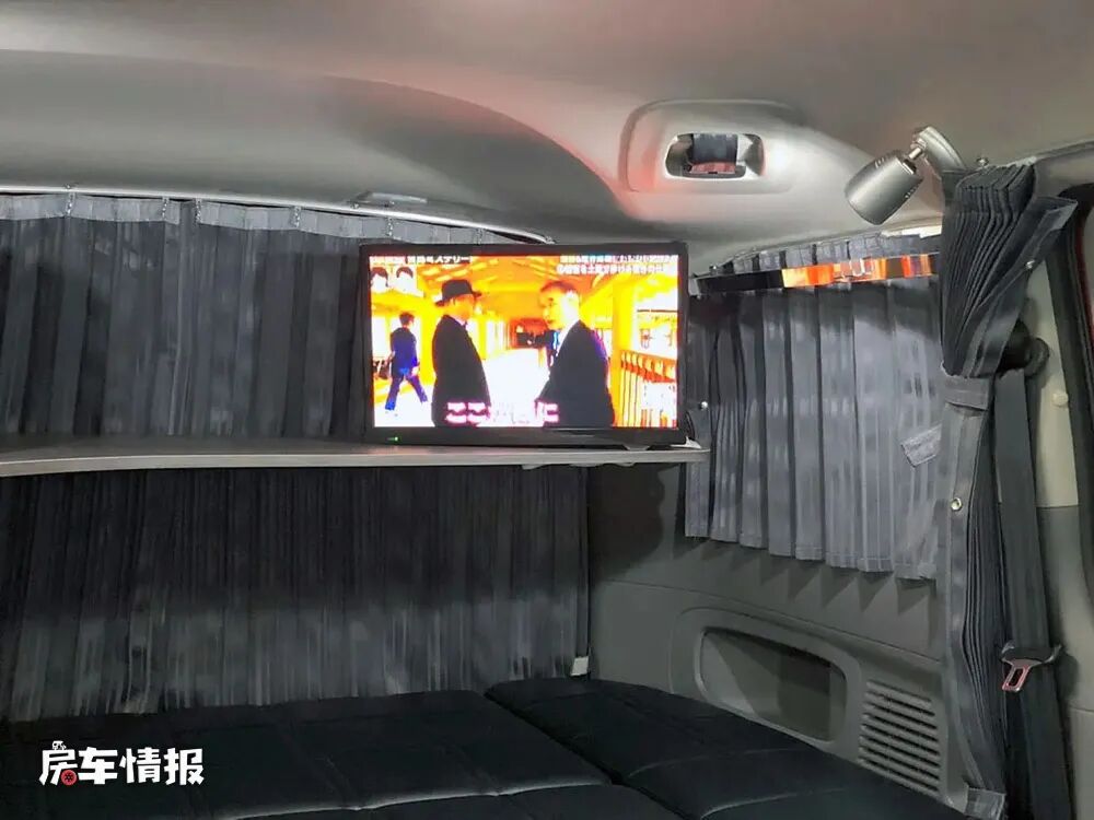 在车厢尾部上方还带有一个可置物的夹层,上方配置了一台基础的微波炉和液晶电视,平时也可以热热饭菜,看看电视,满足基础的生活需求。