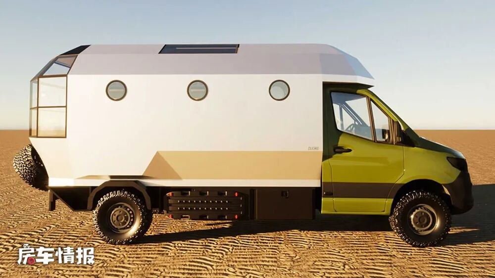 这款概念露营车是搭建于梅赛德斯奔驰Sprinter 4x4的底盘,我们都知道Sprinter 4x4是欧美越野房车圈中比较大热且非常有代表性的一款车型,Sprinter 4x4是搭载了一台3.0T的V6柴油发动机,匹配7AT变速箱,最大功率为140kW,最大扭矩则可达439N·m,并且整车是采用了四驱模式,搭配全地形的越野轮胎和超高的离地间隙,可以使后期的爬坡能力相较于普通车型可以提升近20%,以发挥出整车最有优势的越野性能,同时还能够保证车辆在行驶中的平稳性,使驾驶员得到更加舒适自在的驾乘体验。