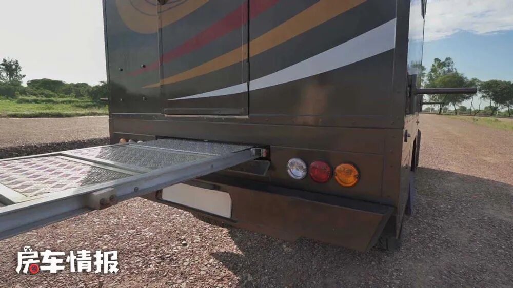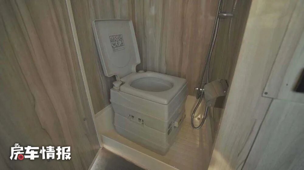 最后车厢的尾部也提供了一间独立的小型卫浴室,带有便携式的马桶和独立的淋浴花洒,这样日常的基础洗漱需求也可以得到解决了。