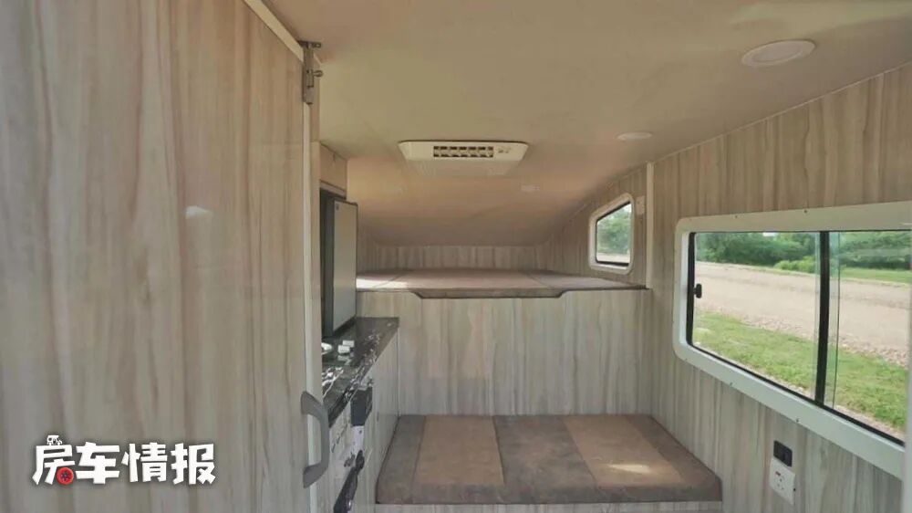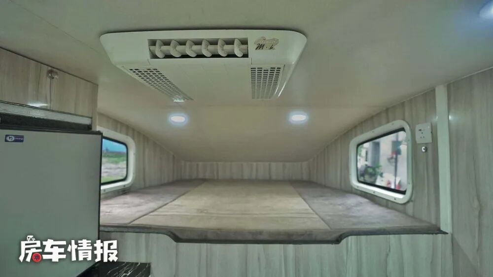 最前方依然是位于顶部额头区内的双人床铺,只不过径直的高度不太理想,无法满足日常的正常坐直,两边也提供了基础的采光通风的窗户。