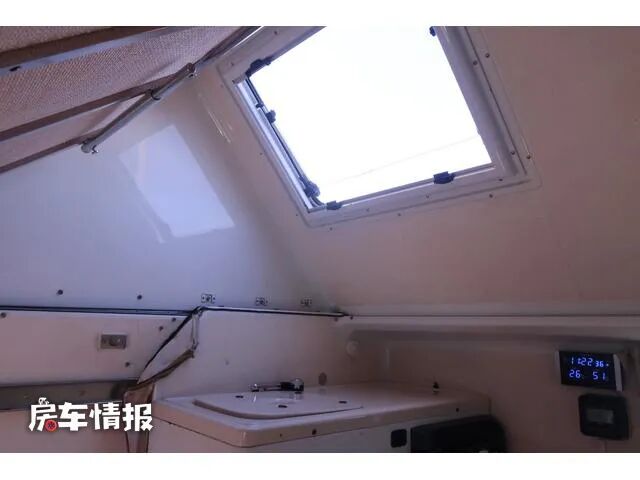 除此之外,这辆车的顶部是一个可斜坡式打开的设计,这样驻车之后打开顶部也能保证内部的一个正常站立和活动,顶部还加入了一扇尺寸较大的窗户,也可以为车内提供较好的采光度。