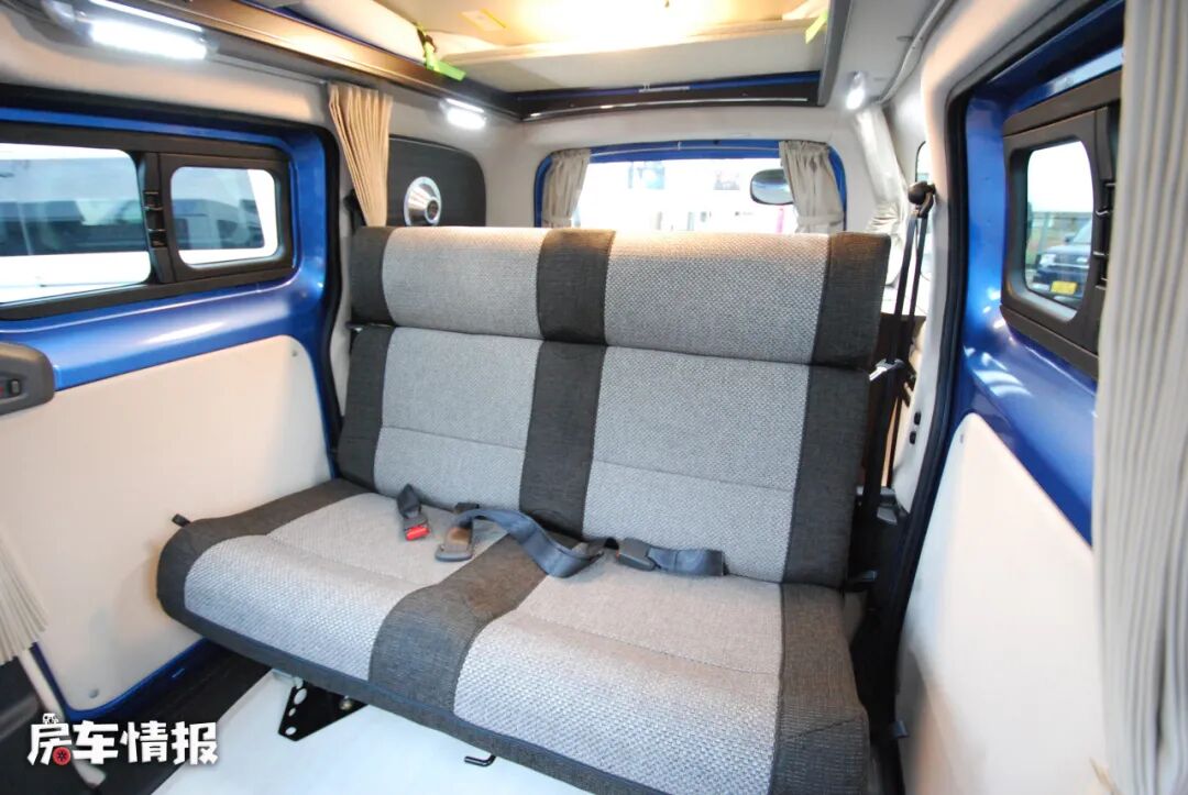 打开车门,可以看到一张双人连排座椅,带有安全带,日常行车可坐人。