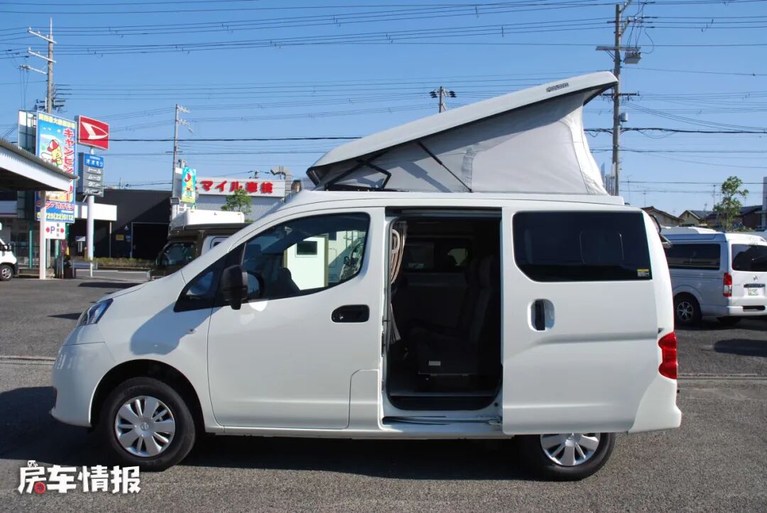 这款车是基于日产NV200底盘所打造的,日产NV200作为一款日本比较热门的车型,无论是其大小尺寸还是内部的空间利用率都是非常适合家用的,整车的长宽高尺寸分别为4400*1695*1985mm,不足5米的长度和不足2米的高度,对于日后的道路通过都有一定的便利性,而为了保证车内的空间,车顶加入了升顶舱。