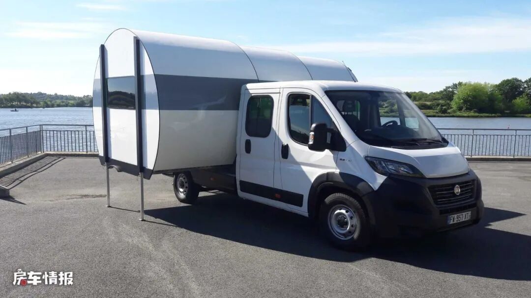 今天给大家介绍的这款车比较有意思,这个点在于它的外观造型和我们日常所介绍的房车不太一样,暂且称它为分体式房车吧!