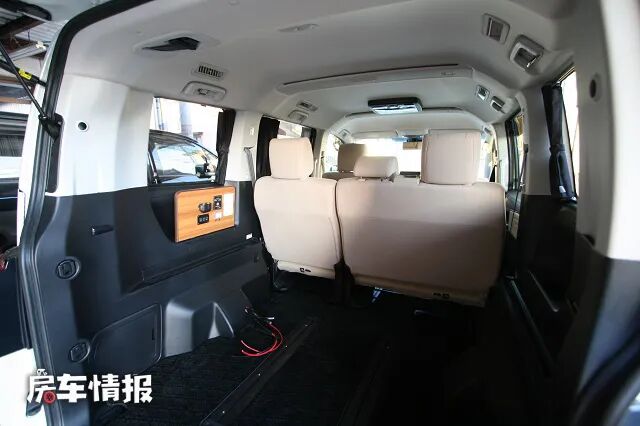原底盘为7座车型,但由于后期需要加装功能区,所以改为5座设计,除去主副驾驶座椅,车厢内部保留了第二排三人座椅,日常行驶过程中可乘坐。