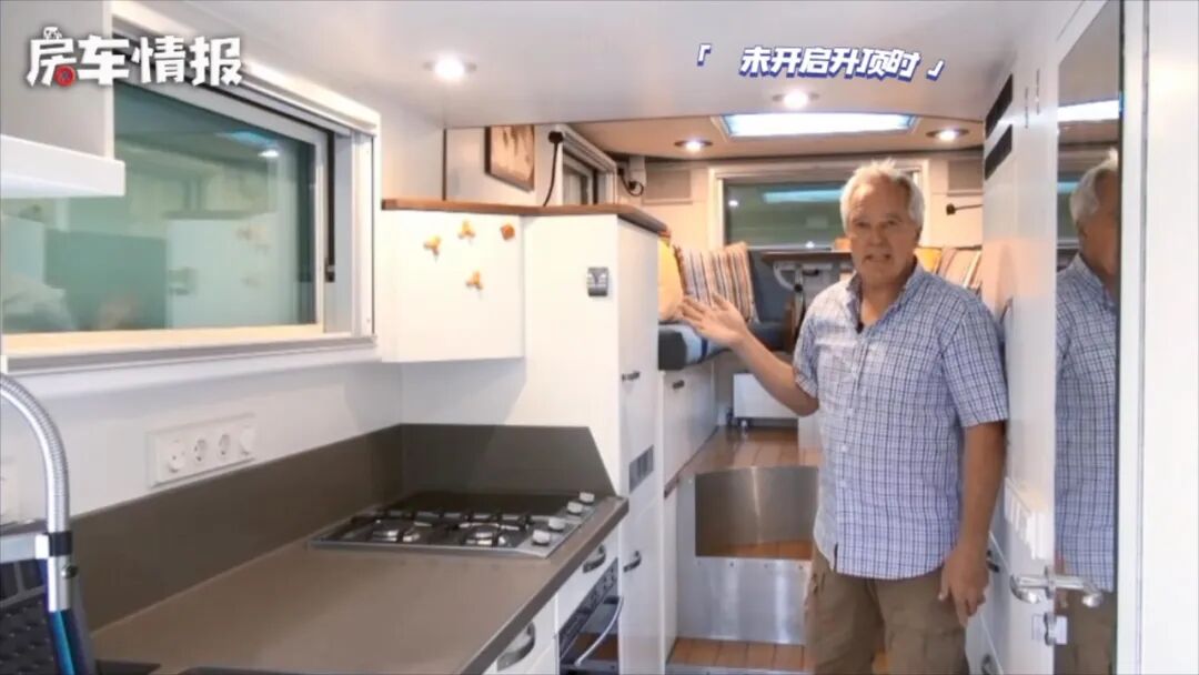 车身采用可升降设计,还有电动车窗,进一步提升车内空间,另外车内的整体氛围还是以简约为主,并没有国内同类型房车的那种浮夸风,整体给人的印象还是挺不错的,下面就跟着大叔来看看车内还有哪些亮点设计吧!