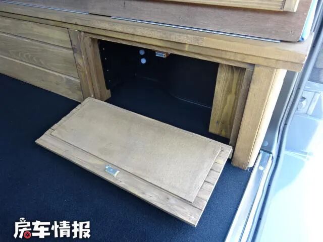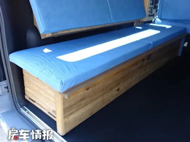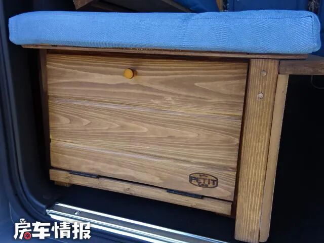 车厢尾部内的设计还是挺有意思的,一侧是类似沙发椅式的箱体设计,带有坐垫和靠背,座椅下方还带有储物的抽屉,因为整车的尺寸有限,所以内部的储物空间相对也较少。