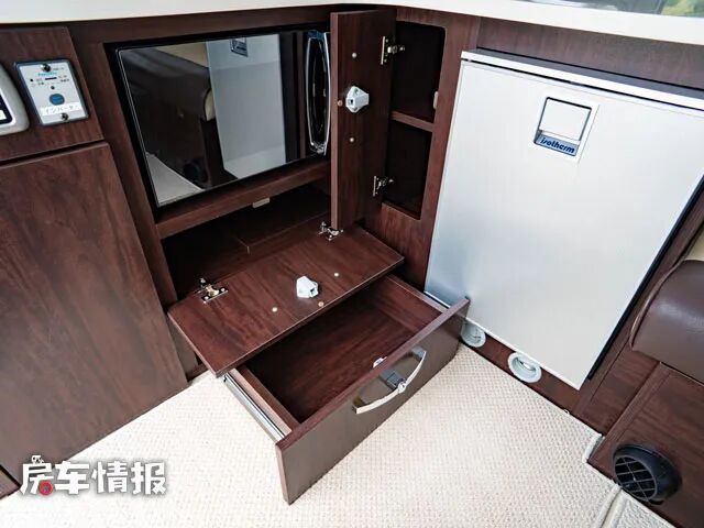 最前方驾驶室顶部是配置了一台19寸的液晶电视,可以为日常生活提供最基本的娱乐需求。