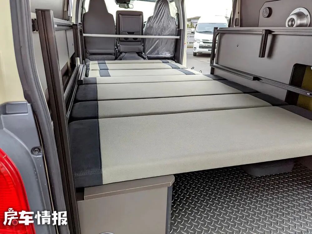 今天给大家介绍一款合作款的丰田海狮床车,整辆车加入了JAOS越野套件以及车内的滑轨,虽然是很小的设计,但是却让整辆车多了几分越野的气息,另外作为一辆基础的床车,也可以使车内的床铺更灵活的使用,以保证行李的存放,具体这个套件是怎样实现的,我们一起来看看吧~