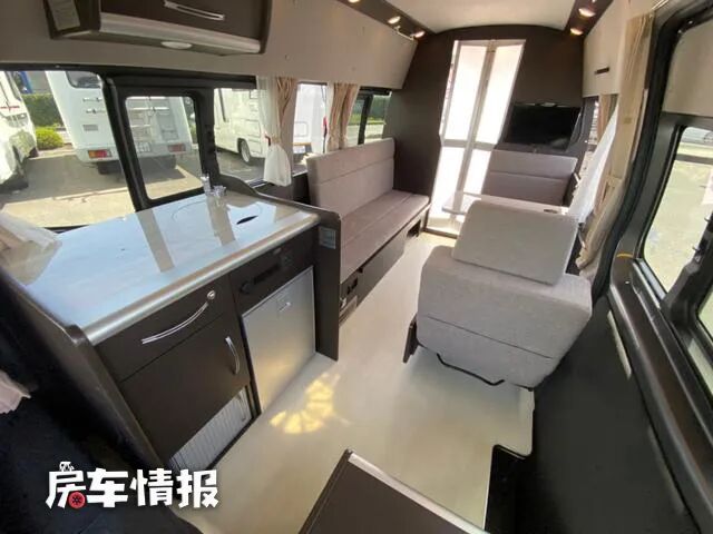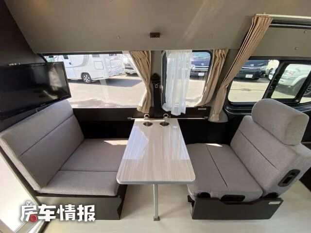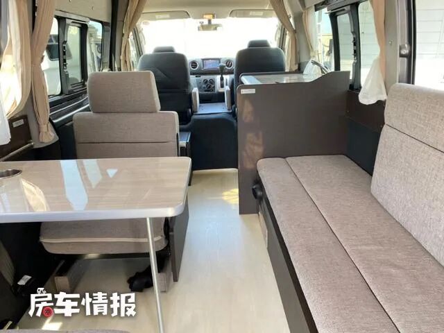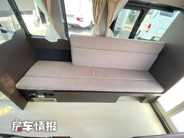 而与之相对的另一侧则是一张长条的沙发,驻车后也可乘坐。