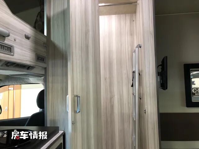 正对乘客门的则是一个空间不错的大衣柜,内部也有晾衣杆,可以挂放一些长款的大衣,或者存放一些被褥。