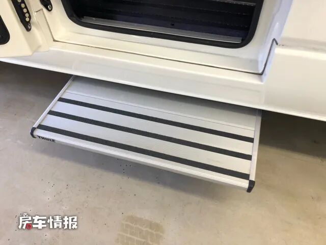 车身外部配有基础的遮阳棚,还配有踏步方便上下车,另外全车使用的是17英寸的AW轮胎。