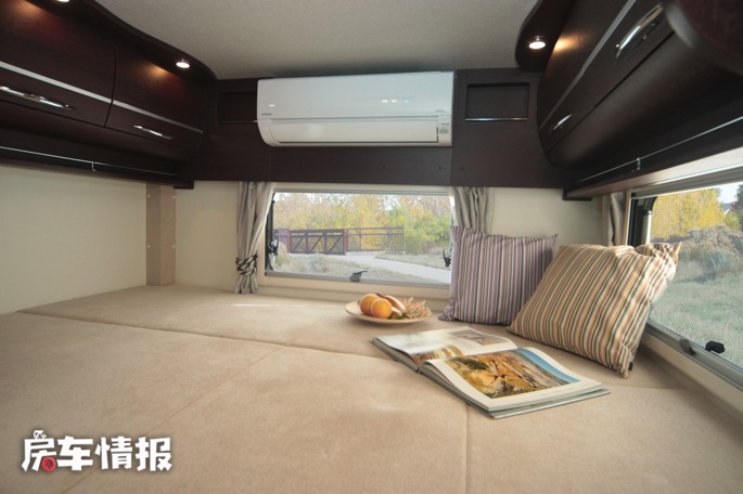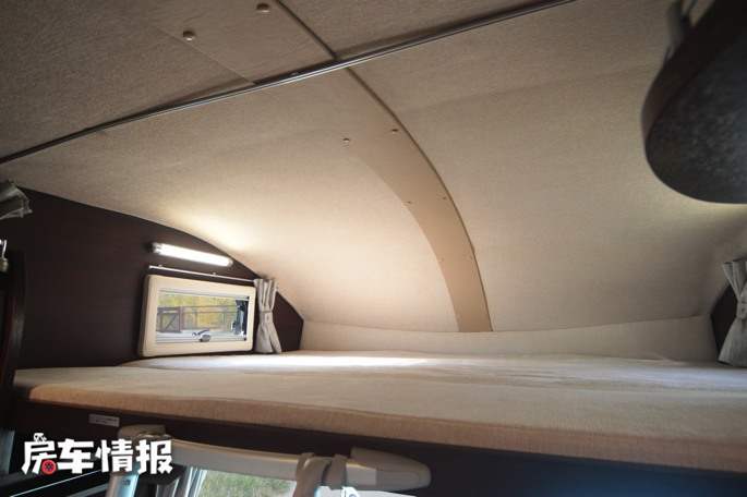位于驾驶室顶部同样提供了一张额头床,尺寸达到了1900*1700mm,这在额头床里是相当大了,可以轻轻松松睡下2名成年人。